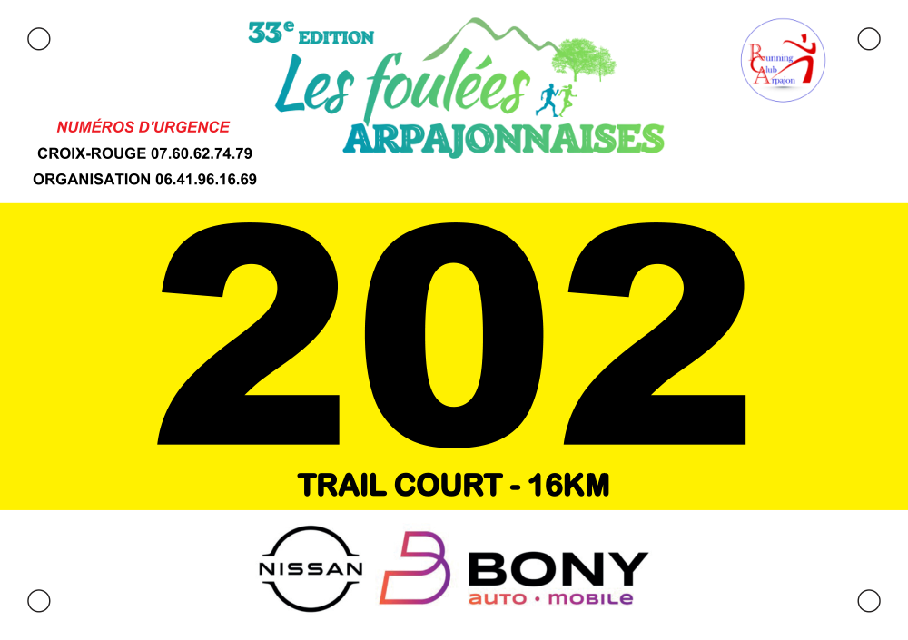 Vous Trouverez une proposition de dossard personnalisé ou non et d’épingles à votre choix: